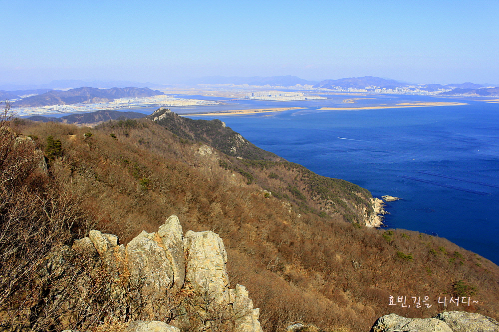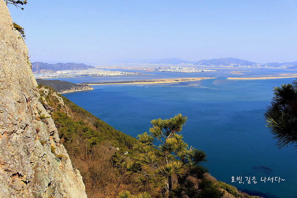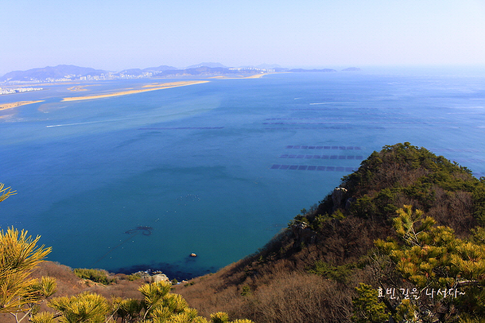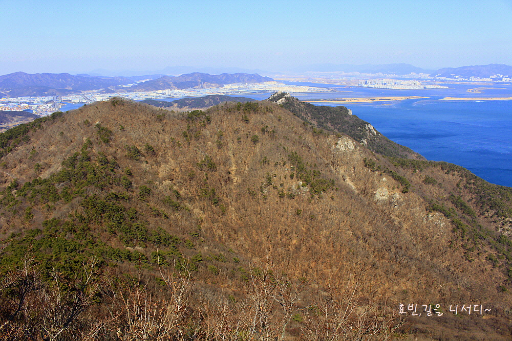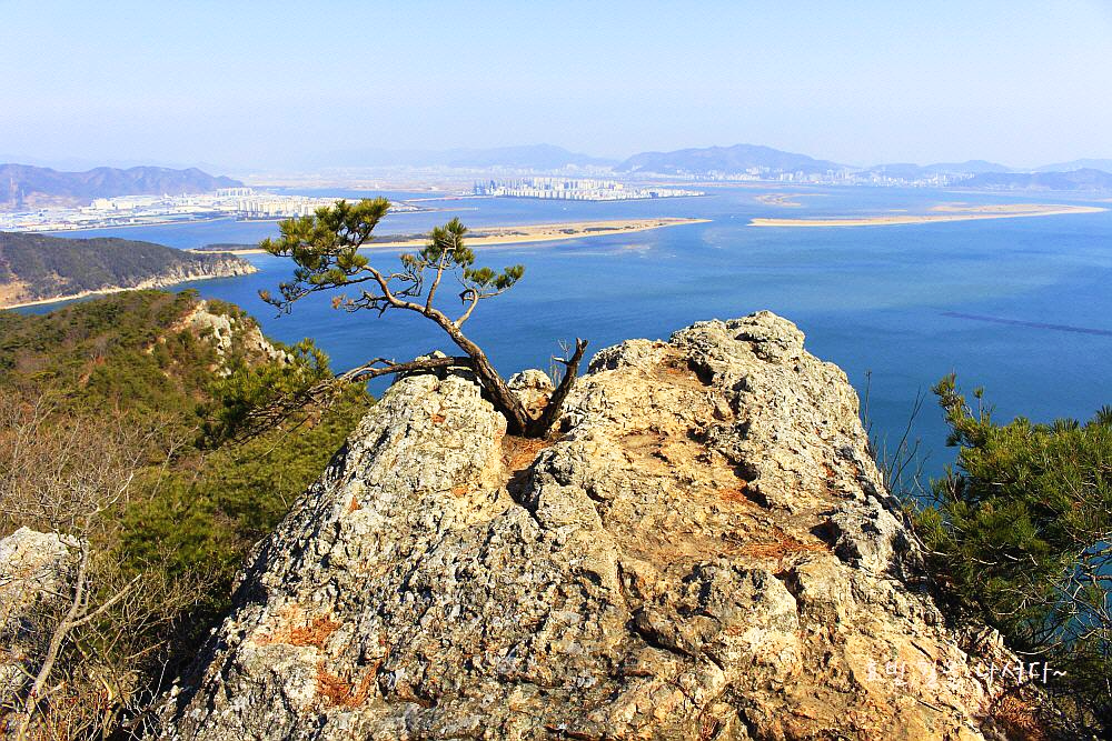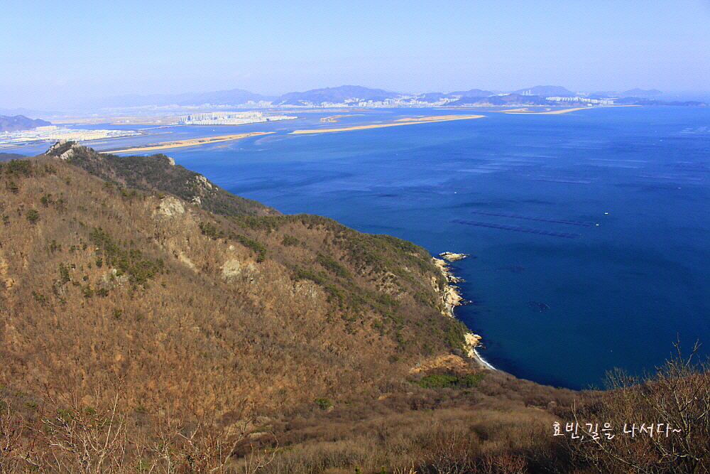 좌측 뒤로 있는 산이 진해 굴암산, 그 우측으로 부산 강서구의 보배산과 봉화산으로 이어진다.