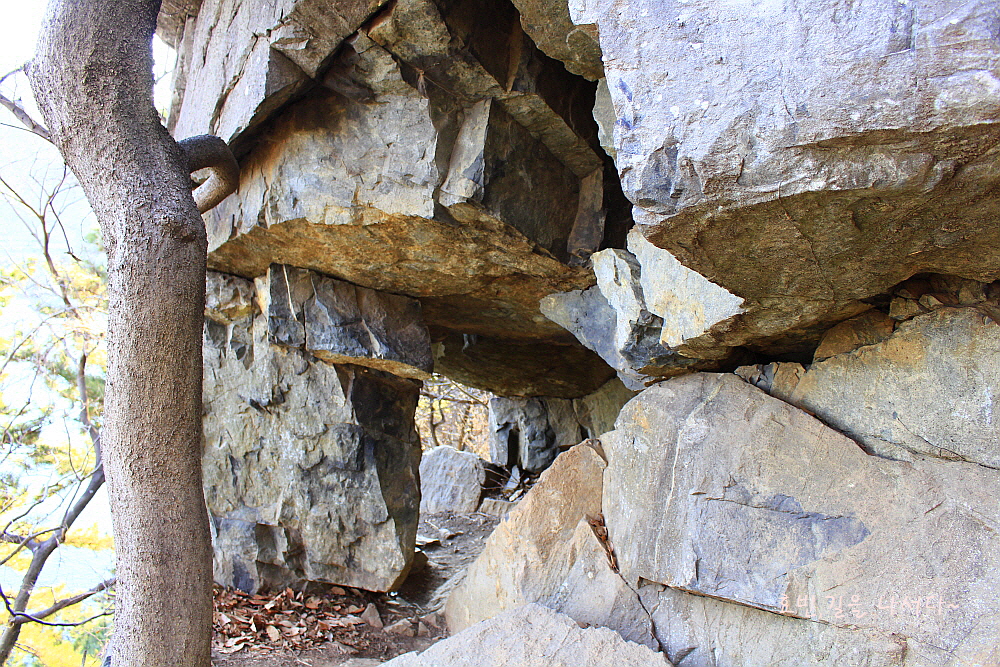 위의 커다란 바위가 누르고 있어 그런지, 어째 아래쪽 바위는 얼굴이 일그러졌네..