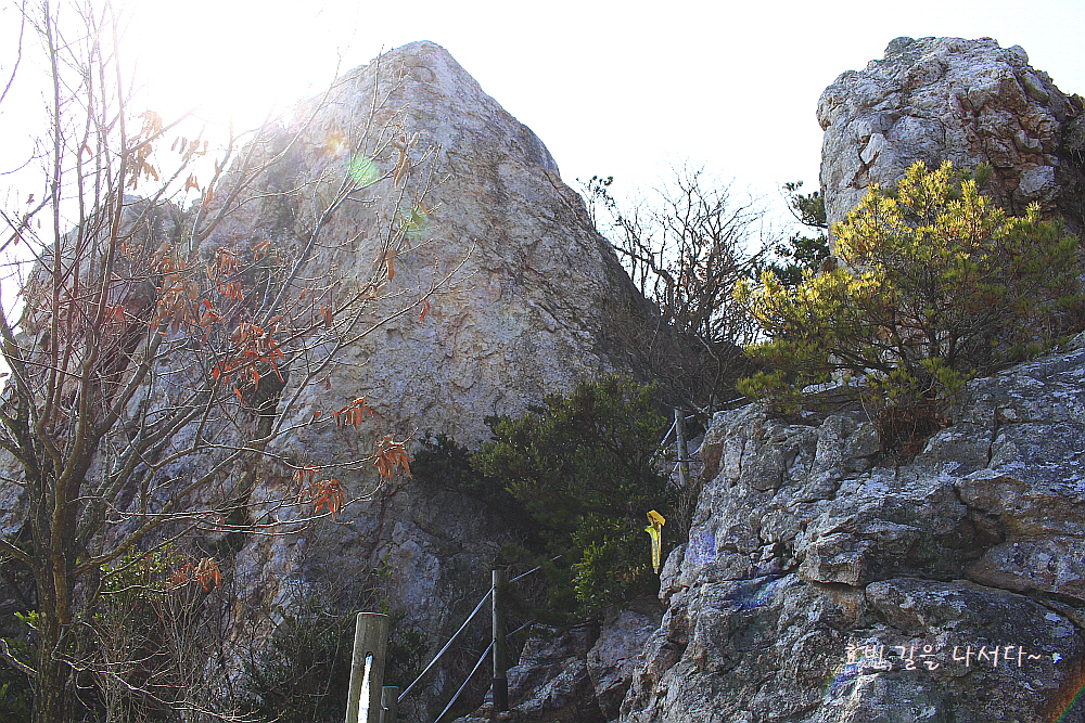 희미하지만 분명 오간 흔적들 따라 올라서니 큰 바위지대가 나오기 시작한다.