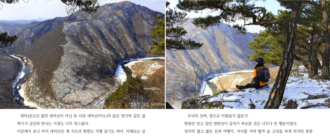 목차 "굽이도는 물길따라 절경이 펼쳐지다."에는 물길도 산길도 아름다운 산지들을 선정해 보았다.