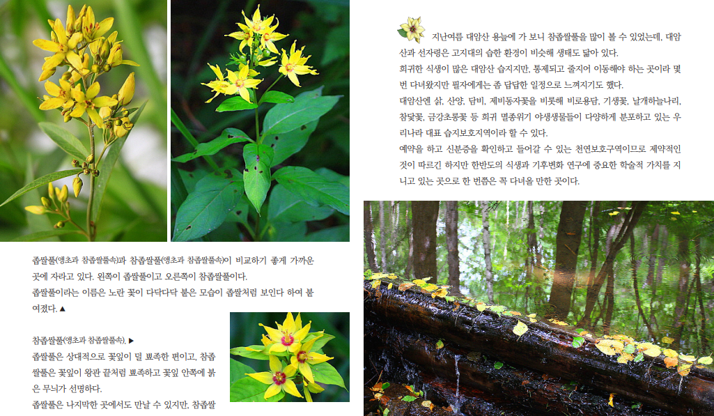 ** 각 목차마다 야생화가 시작되는 첫 문장은 이날 만난 야생화 목록을 먼저 소개한 뒤 진행을 하였다.