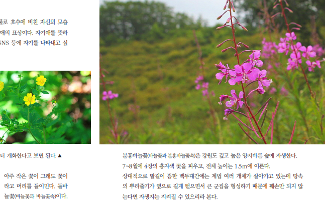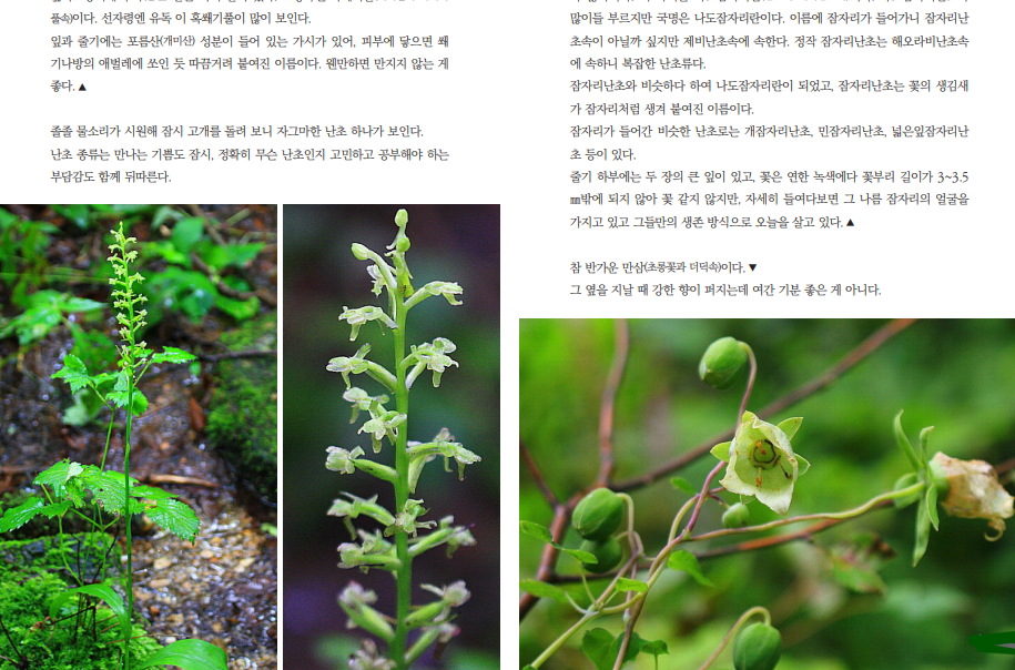 이외에도 혹쐐기풀, 금꿩의다리, 나도잠자리란, 만삼, 돌바늘꽃과 분홍바늘꽃 등의 내용도 흥미롭다.
